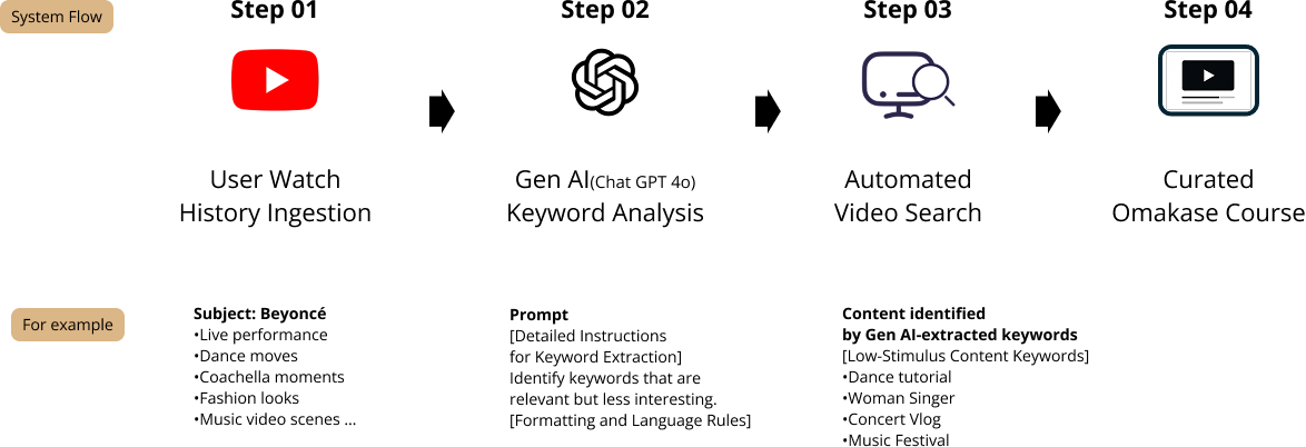 - Finally, I combined those new videos with the ones the user had already seen to create the full Omakase course.